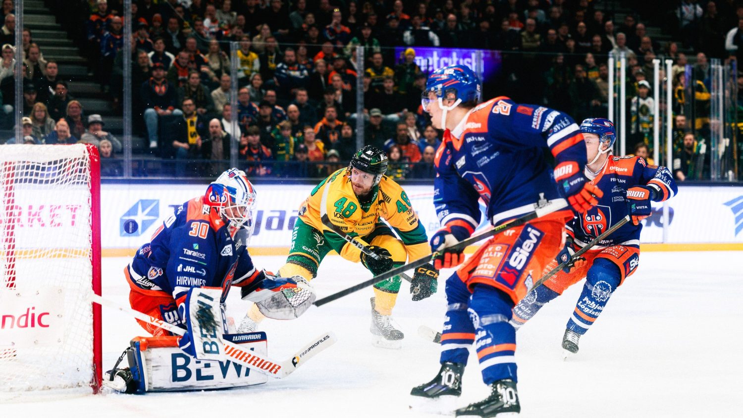 37. minuutilla Ilves-puolustaja Simon Johanssonin tiukka rannelaukaus painui aavistuksen ohi kilpikäden puolelta. Reilu minuutti ennen summeria tupsukorvat rakensivat komeasti suorasta hyökkäyksestä tekopaikan, jossa Carl Klingbergin laukaus nousi kuitenkin yli takakulmasta. Johtomaalia ei syntynyt, mutta kahden maalin takaa toisessa erässä tasoihin noussut Ilves saattoi silti olla tyytyväinen viimeisimmän 20-minuuttisen antiin.