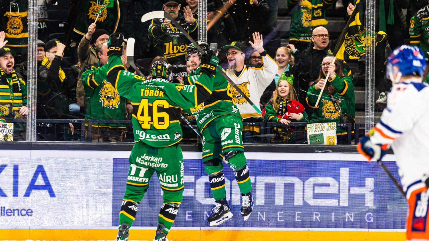 Nokia Arenan kotiyleisö pääsi kuitenkin tuulettamaan pian, kun Lukas Jasekin laukaus ohitti Christian Heljangon. Tappara haastoi osuman maalivahdin häirintänä, mitä tarkasteltiinkin pitkään videolta. Lopulta Tappara-puolustaja Jyrki Jokipakan todettiin työntäneen Toni Utusen päin Heljankoa ja maali hyväksyttiin. Lukemat muuttuivat 1–0:aan ajassa 1.43.